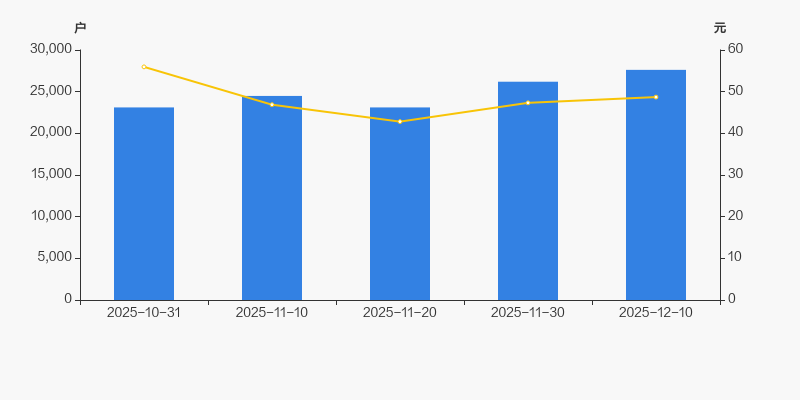 2025年10月31日至今,公司股东户数显著增长,区间涨幅为19.50%。2025年10月31日至2025年12月10日区间股价下降12.96%。