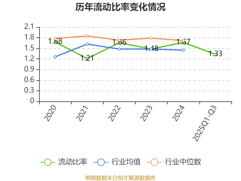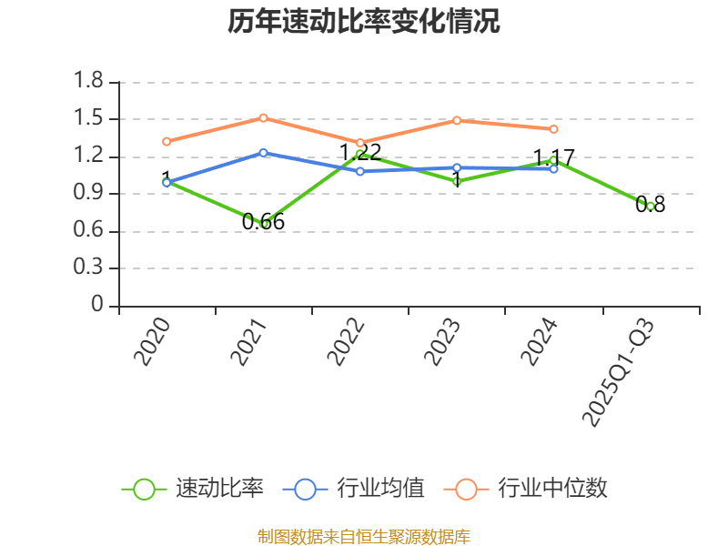 2025年前三季度,公司流动比率为1.33,速动比率为0.8。