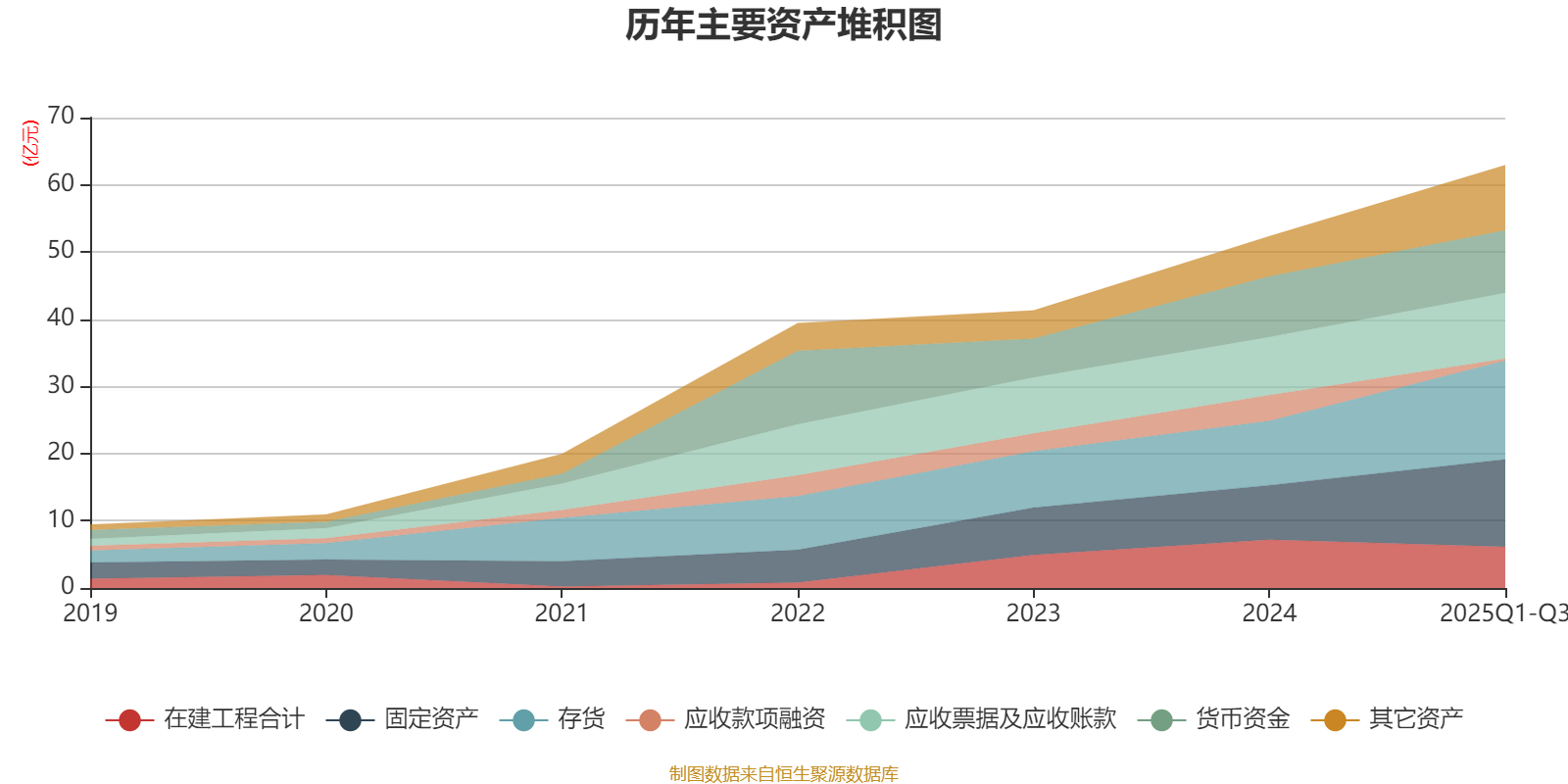 资产重大变化方面,截至2025年三季度末,公司应收款项融资较上年末减少92.09%,占公司总资产比重下降6.84个百分点;固定资产较上年末增加60.76%,占公司总资产比重上升5.23个百分点;存货较上年末增加53.52%,占公司总资产比重上升5.07个百分点;在建工程合计较上年末减少14.95%,占公司总资产比重下降4.01个百分点。