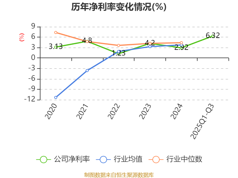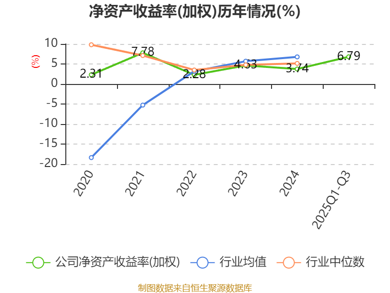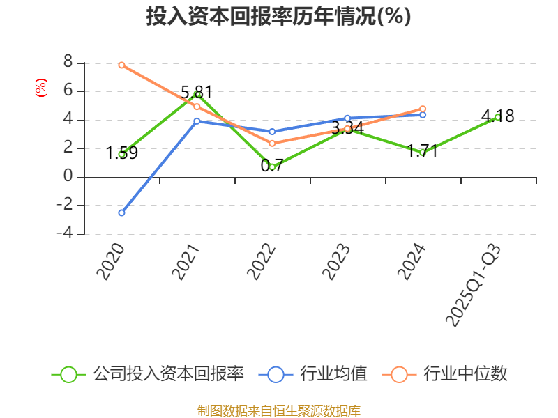 盈利能力方面, 2025年前三季度公司加权平均净资产收益率为6.79%,同比上升4.05个百分点。公司2025年前三季度投入资本回报率为4.18%,较上年同期上升2.9个百分点。