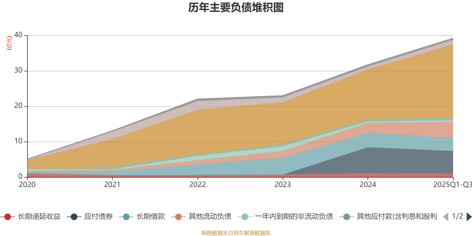 负债重大变化方面,截至2025年三季度末,公司应付票据及应付账款较上年末增加47.03%,占公司总资产比重上升5.97个百分点;应付债券较上年末减少13.27%,占公司总资产比重下降3.92个百分点;长期借款较上年末减少8.54%,占公司总资产比重下降1.91个百分点;其他流动负债较上年末增加60.2%,占公司总资产比重上升1.75个百分点。