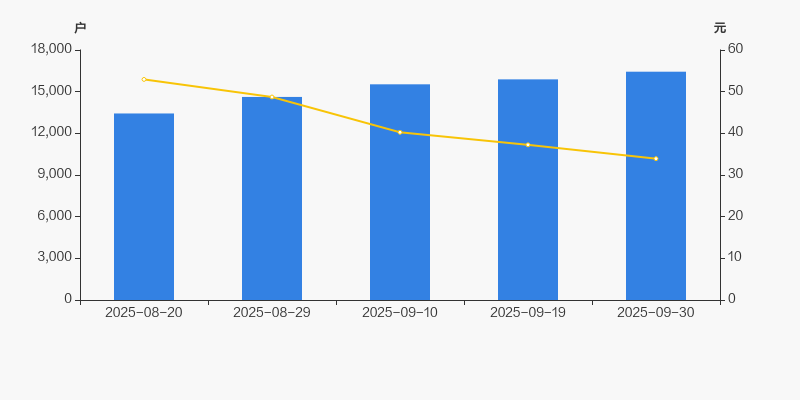 自2025年8月20日以来,公司股东户数连续4期上涨,截至目前增幅为22.39%。2025年8月20日至2025年9月30日区间股价下降35.93%。