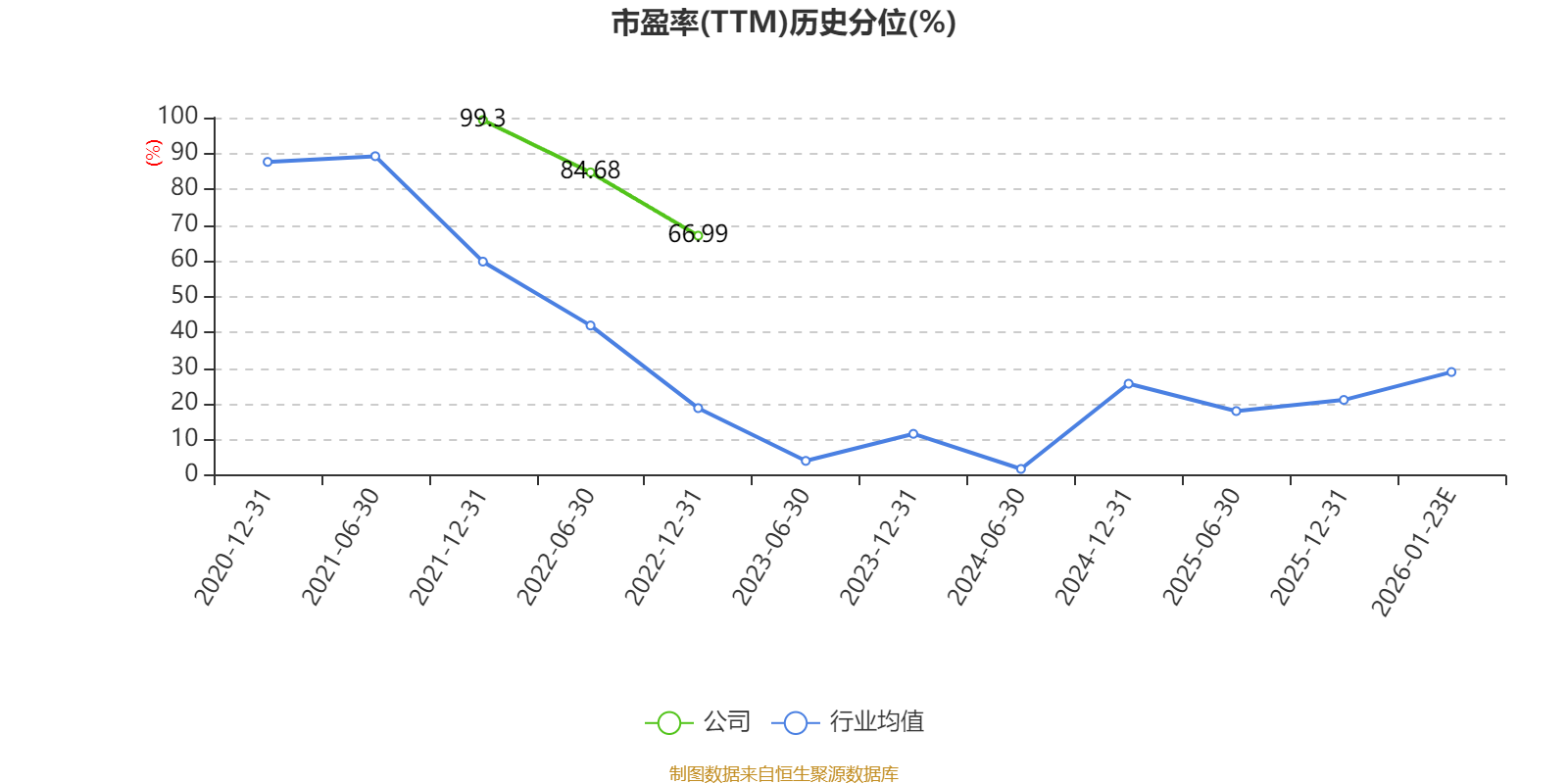以本次披露业绩预告均值计算,公司近年市盈率(TTM)图如下所示: