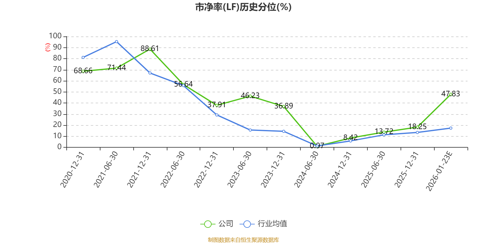 市盈率、市净率为负时,不显示当期分位数,会导致折线图中断。