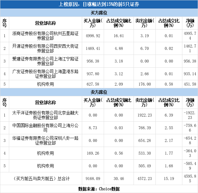 多主力现身龙虎榜,中环环保涨停(10-10)
