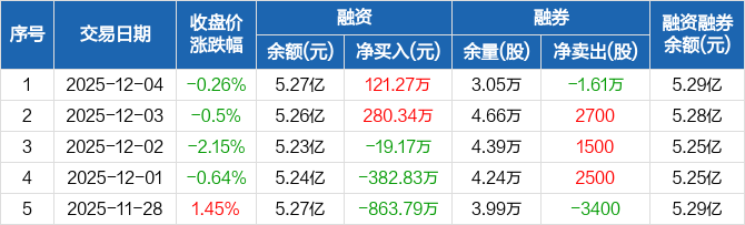 盛弘股份:融资净买入121.27万元,融资余额5.27亿元(12-04)