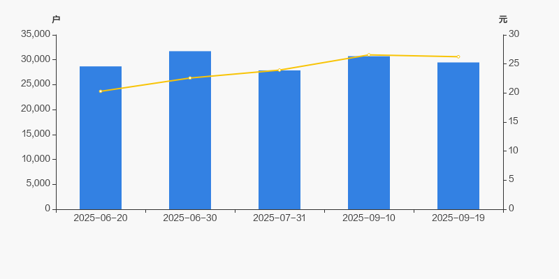 2025年6月20日至今,公司股东户数有所增长,区间涨幅为2.77%。2025年6月20日至2025年9月19日区间股价上涨29.32%。