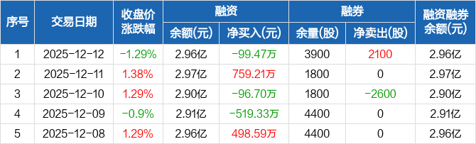 爱乐达:融资净偿还99.47万元,融资余额2.96亿元(12-12)