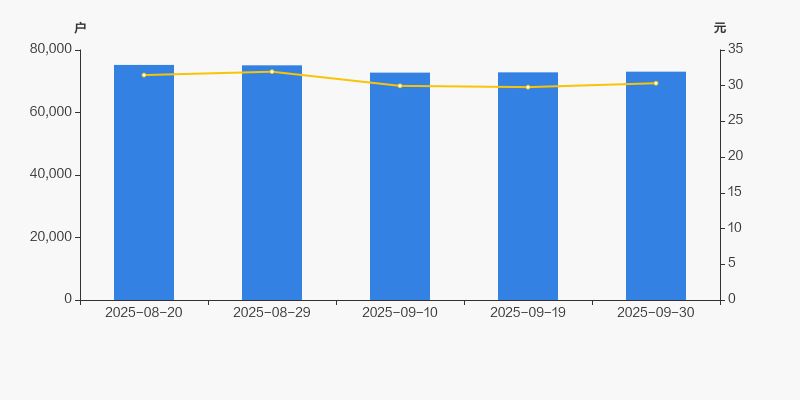 截至2025年9月30日,公司最新总股本为8.31亿股,其中流通股本为8.21亿股。户均持有流通股数量由上期的1.13万股下降至1.12万股,户均流通市值34.12万元。