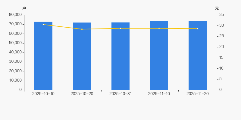 截至2025年11月20日,公司最新总股本为8.31亿股,其中流通股本为8.21亿股。户均持有流通股数量由上期的1.12万股下降至1.11万股,户均流通市值31.84万元。