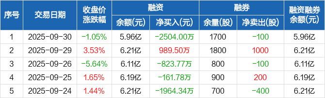 精研科技:融资净偿还2504万元,融资余额5.96亿元(09-30)