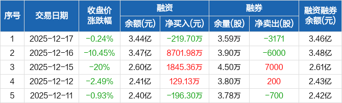 一品红:融资净偿还219.7万元,融资余额3.44亿元(12-17)