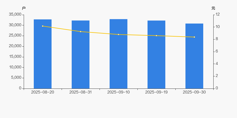 2025年8月20日至今,公司股东户数有所下降,区间跌幅为6.00%。2025年8月20日至2025年9月30日区间股价下降17.62%。