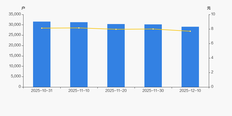 自2025年10月31日以来,公司股东户数连续4期下降,截至目前减幅为7.86%。2025年10月31日至2025年12月10日区间股价下降5.30%。