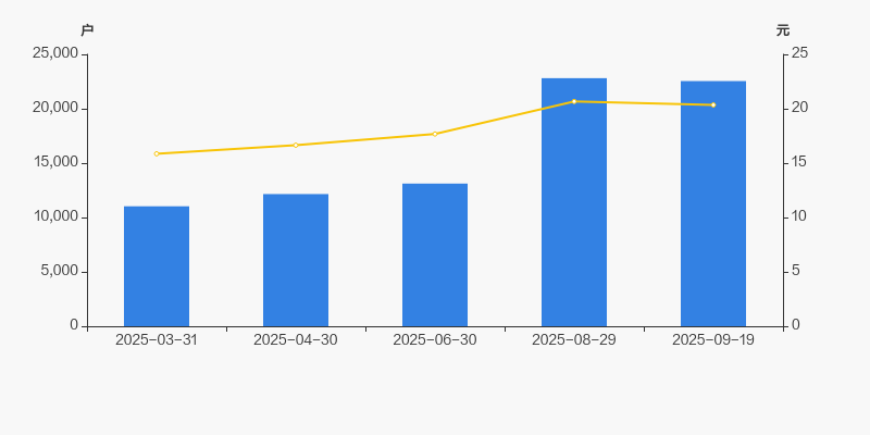 2025年3月31日至今,公司股东户数成倍增长,区间涨幅达104.36%。2025年3月31日至2025年9月19日区间股价上涨28.28%。