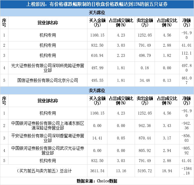 多主力现身龙虎榜,百邦科技跌停(12-22)