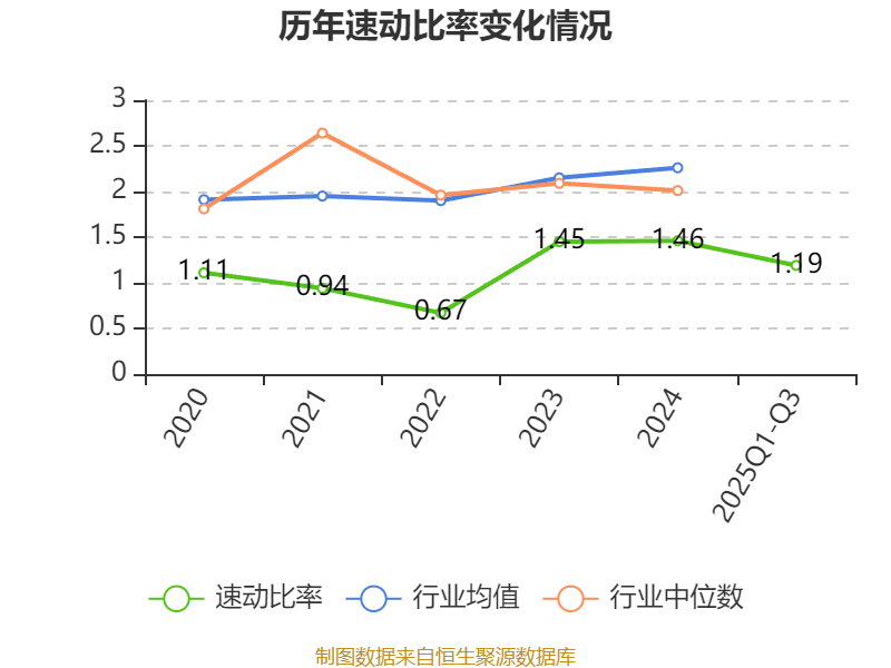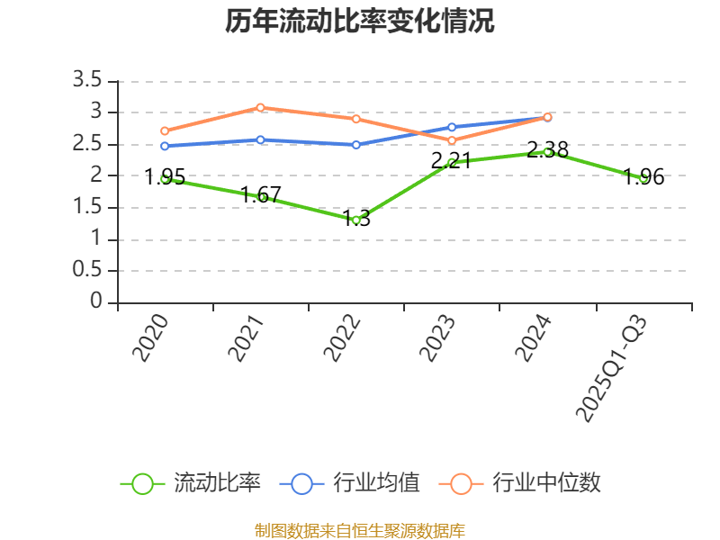 2025年前三季度,公司流动比率为1.96,速动比率为1.19。