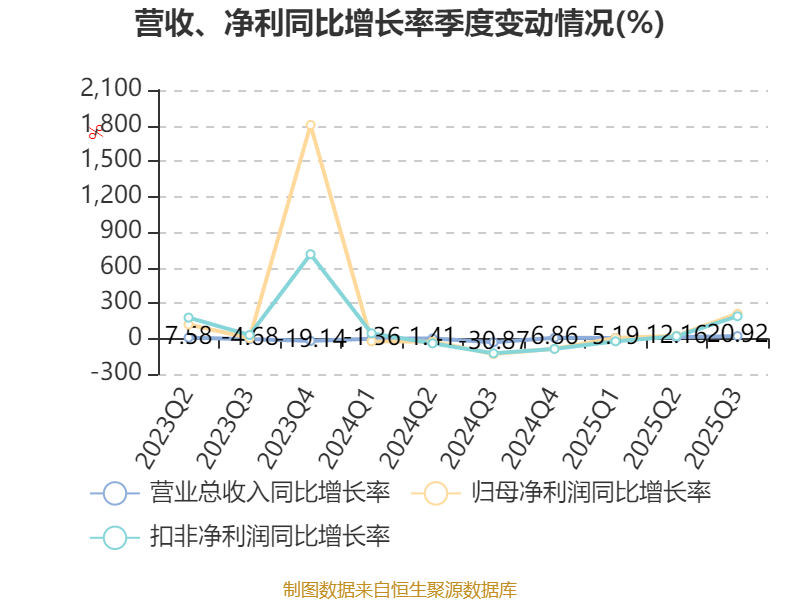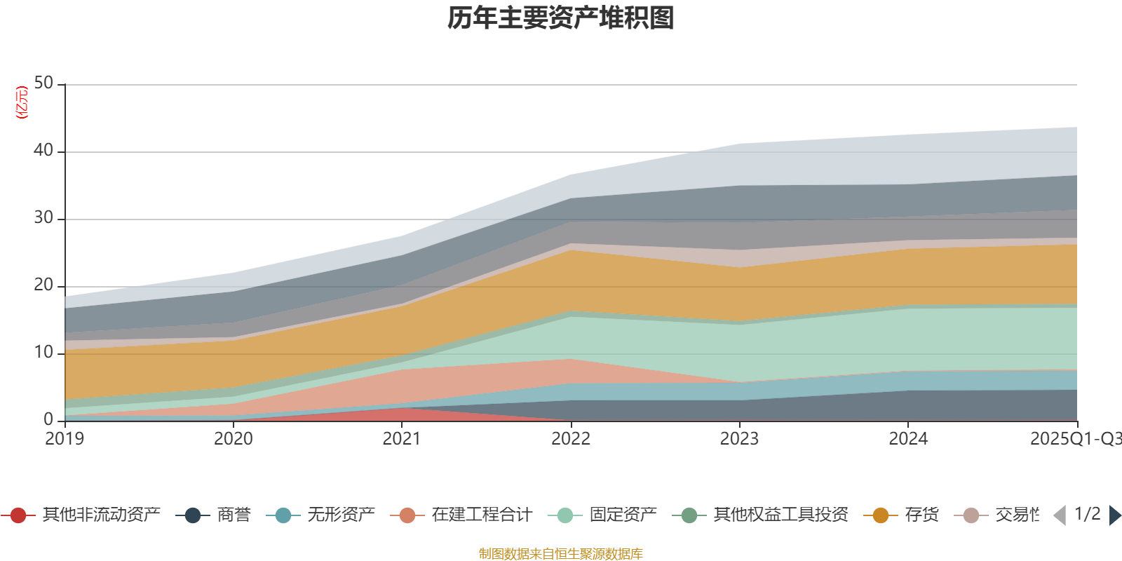 资产重大变化方面,截至2025年三季度末,公司应收票据及应收账款较上年末增加17.76%,占公司总资产比重上升1.22个百分点;其他流动资产较上年末减少36.37%,占公司总资产比重下降1.01个百分点;交易性金融资产合计较上年末减少23.62%,占公司总资产比重下降0.77个百分点;存货较上年末增加6.34%,占公司总资产比重上升0.7个百分点。