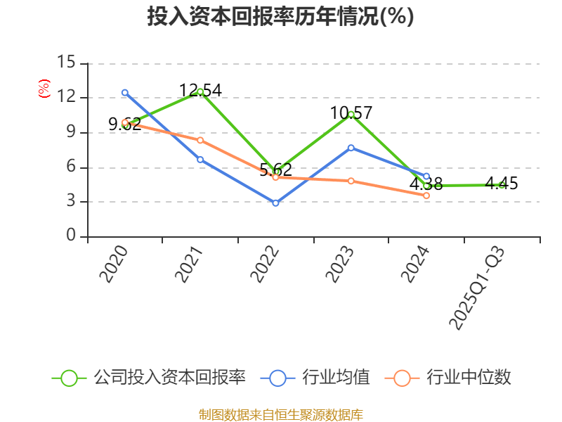盈利能力方面, 2025年前三季度公司加权平均净资产收益率为6.42%,同比上升1.93个百分点。公司2025年前三季度投入资本回报率为4.45%,较上年同期上升0.79个百分点。