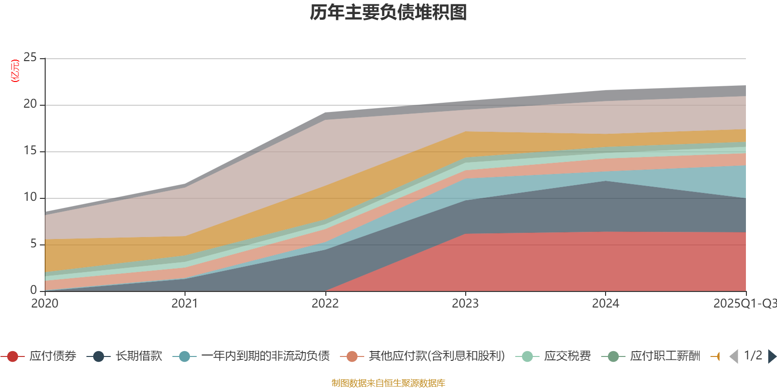 负债重大变化方面,截至2025年三季度末,公司一年内到期的非流动负债较上年末增加244.55%,占公司总资产比重上升5.67个百分点;长期借款较上年末减少32.88%,占公司总资产比重下降4.44个百分点;应付债券较上年末减少0.97%,占公司总资产比重下降0.53个百分点;应付职工薪酬较上年末减少18.39%,占公司总资产比重下降0.31个百分点。