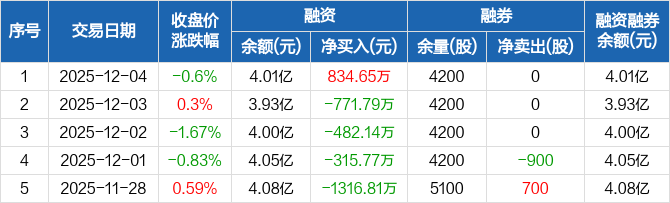 水羊股份:融资净买入834.65万元,融资余额4.01亿元(12-04)