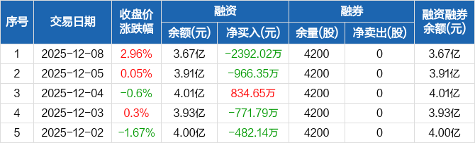 水羊股份:融资净偿还2392.02万元,融资余额3.67亿元(12-08)