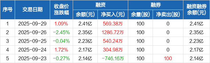 欣锐科技:融资余额2.41亿元,创历史新高(09-29)
