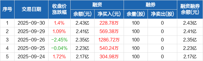 欣锐科技:融资余额2.43亿元,创历史新高(09-30)