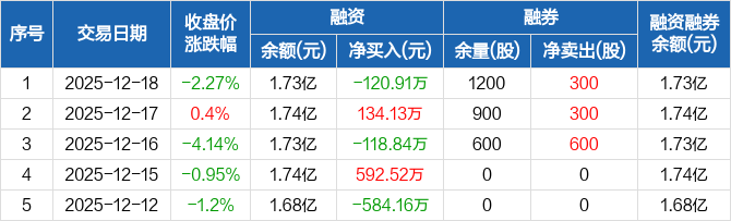 欣锐科技:融资净偿还120.91万元,融资余额1.73亿元(12-18)
