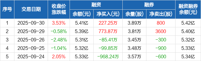 锐科激光:融资净买入227.25万元,融资余额5.41亿元(09-30)