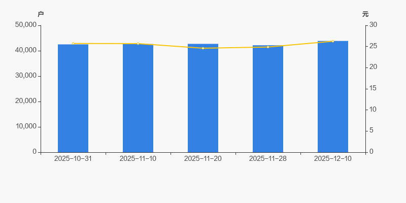 2025年10月31日至今,公司股东户数有所增长,区间涨幅为3.18%。2025年10月31日至2025年12月10日区间股价上涨2.06%。