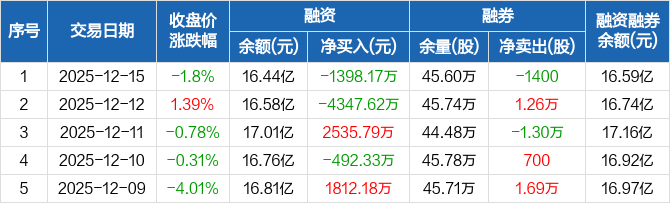 金力永磁:融资净偿还1398.17万元,融资余额16.44亿元(12-15)