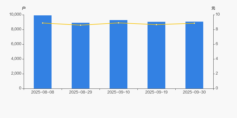 2025年8月8日至今,公司股东户数有所下降,区间跌幅为8.58%。2025年8月8日至2025年9月30日区间股价下降0.34%。