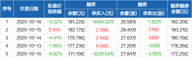 宁德时代:融资净偿还9459.02万元,融资余额181.22亿元(10-16)