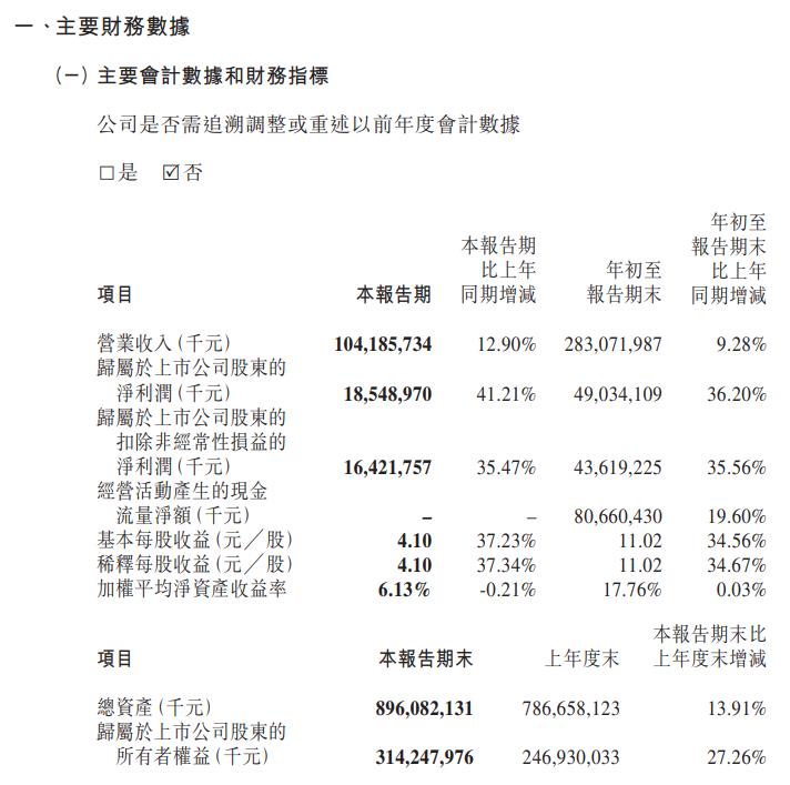 宁德时代:第三季度净利润185.5亿元 同比增长41%