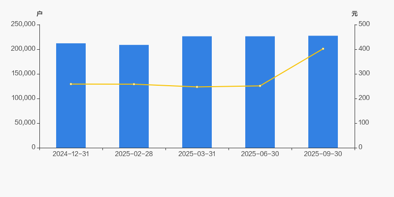 截至2025年9月30日,公司最新A股总股本为45.63亿股,其中流通股本为42.56亿股。户均持有流通股数量由上期的1.88万股下降至1.87万股,户均流通市值752.24万元。