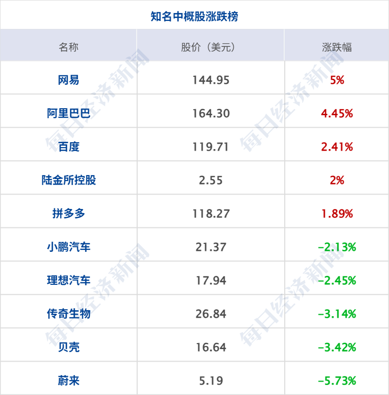 美股三大指数集体收跌,道指跌0.89%,纳指跌0.38%,标普500指数跌0.53%,热门科技股多数下跌,博通跌超4%,谷歌、微软跌超1%,英伟达、苹果涨超1%;加密货币、太阳能板块跌幅居前,Sunrun跌超8%,Bit Digital跌超5%,Coinbase跌超4%。中概股多数上涨,纳斯达克中国金龙指数涨0.87%,网易涨约5%,阿里巴巴涨超4%,微博涨逾3%,蔚来跌超5%,金山云跌超4%,贝壳跌逾3%。