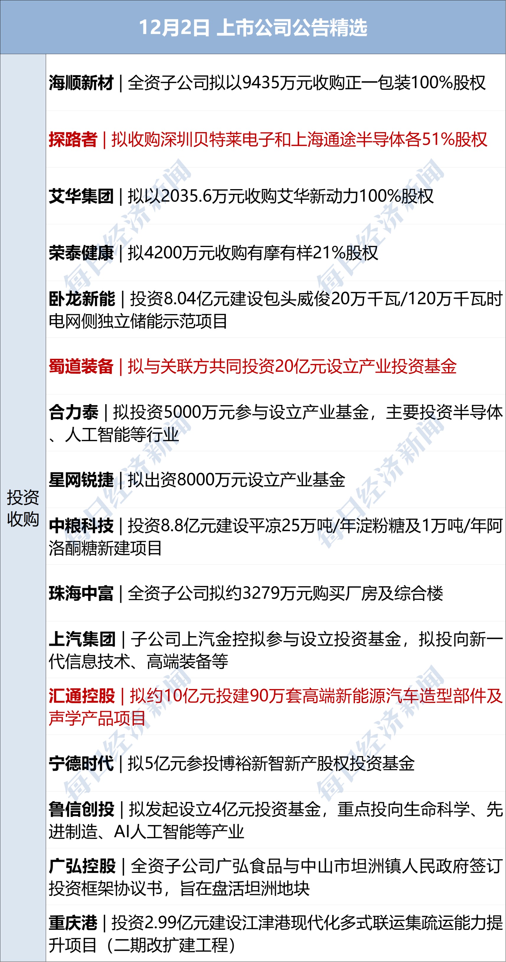 比亚迪(SZ002594,股价95.77元,市值8732亿元)、零跑汽车(HK09863,53.25港元,市值757.12亿港元)等:12月1日,各家新能源车企11月成绩单陆续出炉。零跑汽车交付再创新高,达70327台,同比增长超75%,持续刷新月销纪录;小米汽车交付量再超4万台。小鹏汽车交付36728辆,同比增长19%。蔚来公司交付新车36275台,同比增长76.3%。理想汽车交付新车33181辆。极氪汽车销量28843台,环比增长35%。此外,比亚迪11月汽车销量480186辆;吉利汽车销量破31万辆,同比增长24%。长城汽车销量13.32万台,同比增4.57%;鸿蒙智行全系车型交付新车81864台,同比增长89.61%。