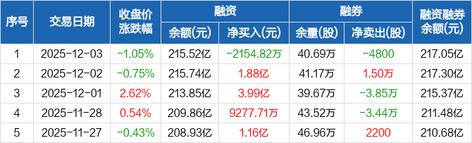 宁德时代:融资净偿还2154.82万元,融资余额215.52亿元(12-03)