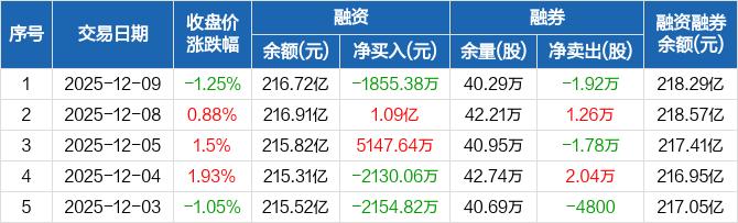 宁德时代:融资净偿还1855.38万元,融资余额216.72亿元(12-09)