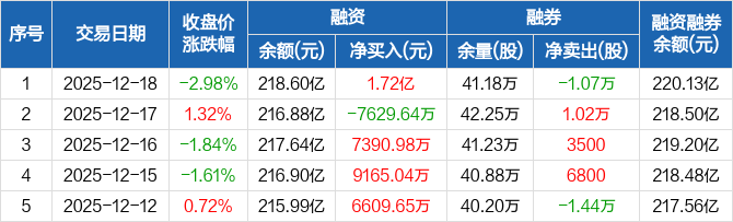 宁德时代:融资余额218.6亿元,创历史新高(12-18)