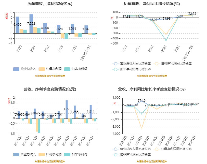 三季报显示,公司前三季度实现营业总收入3.05亿元;归母净利润亏损4815.76万元,上年同期亏损9129.53万元;扣非净利润亏损6717.45万元,上年同期亏损1.01亿元;第三季度实现营业收入1.31亿元,同比增长86.92%,环比增长173.34%;归母净利润-1951.71万元,扣非净利润-2740.75万元。