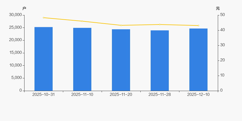 2025年10月31日至今,公司股东户数有所下降,区间跌幅为2.28%。2025年10月31日至2025年12月10日区间股价下降10.76%。