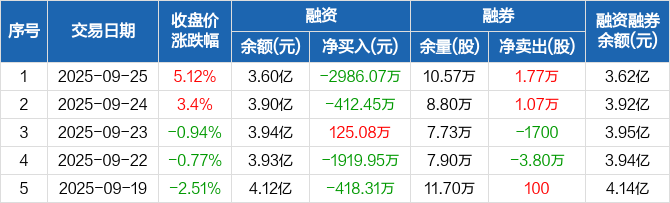 运达股份:融资净偿还2986.07万元,融资余额3.6亿元(09-25)