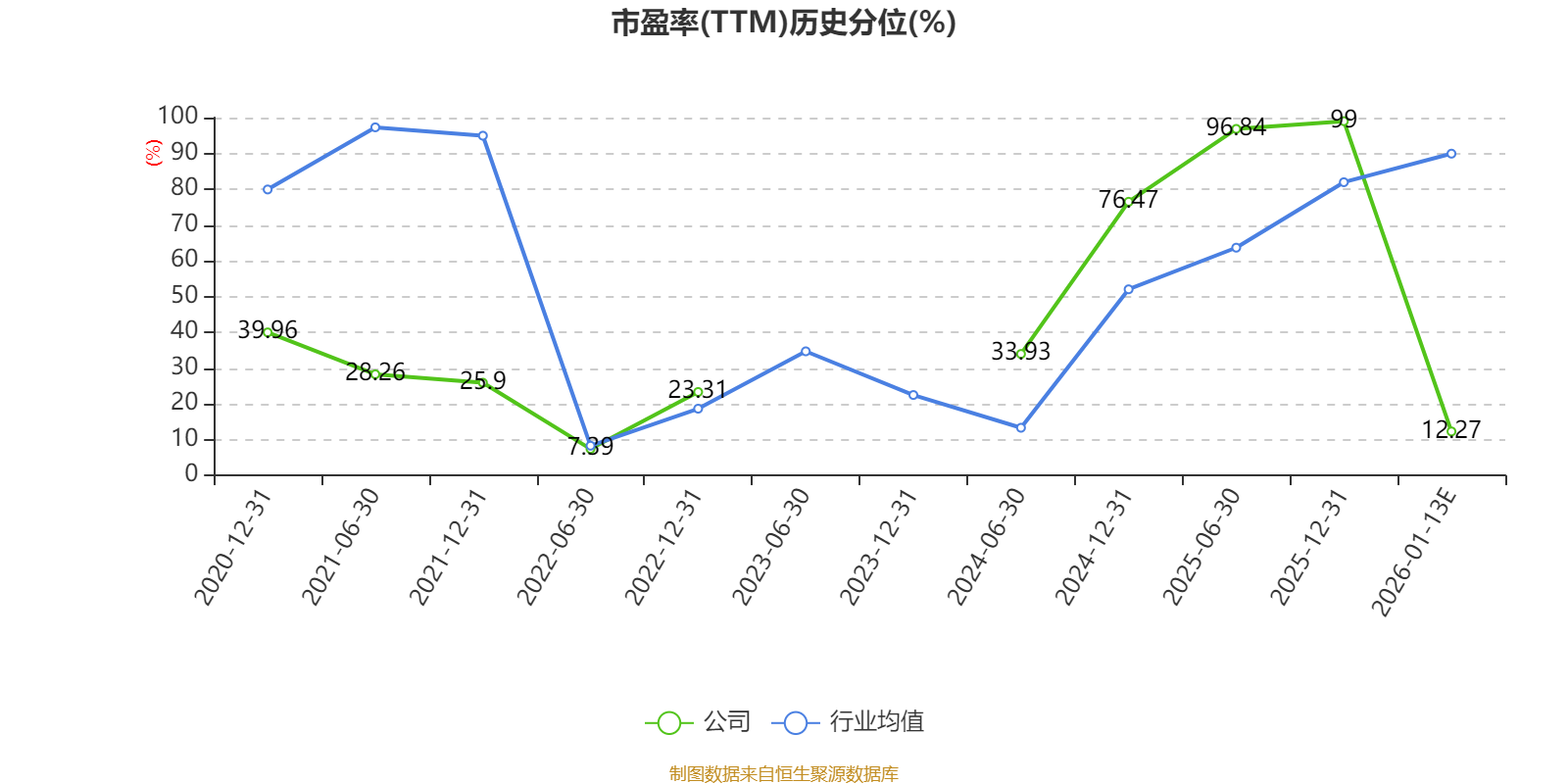 以本次披露业绩预告均值计算,公司近年市盈率(TTM)图如下所示: