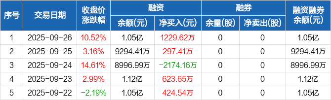 倍杰特:融资净买入1229.62万元,融资余额1.05亿元(09-26)