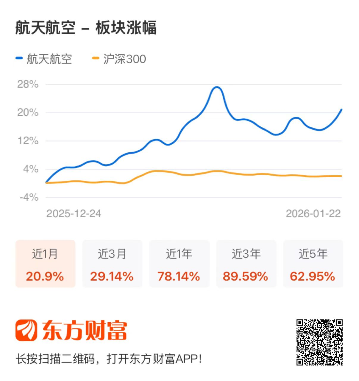1月22日,A股三大指数今日集体收涨,沪指涨0.14%,收报4122.58点;深证成指涨0.50%,收报14327.05点;创业板指涨1.01%,收报3328.65点。盘面上,航天航空行业板块涨4.58%;个股方面,三角防务、航发科技等涨停,航天环宇、安达维尔等均有不同程度上涨。