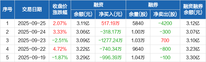 帝尔激光:融资净买入517.19万元,融资余额3.11亿元(09-25)