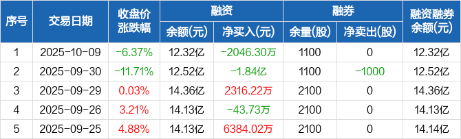 惠城环保:融资净偿还2046.3万元,融资余额12.32亿元(10-09)