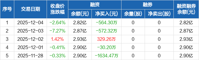 因赛集团:融资净偿还564.3万元,融资余额2.82亿元(12-04)